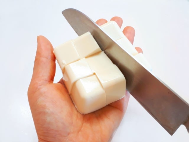 水切りした豆腐を好みのサイズ、形にカットします