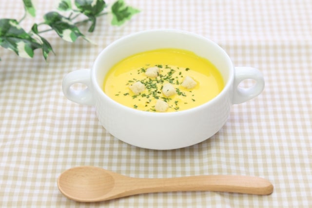 とうもろこしの定番料理はコーンスープでしょう。とうもろこしの口当たりの良い甘さが絶品です。寒い時は体の芯から温まります。