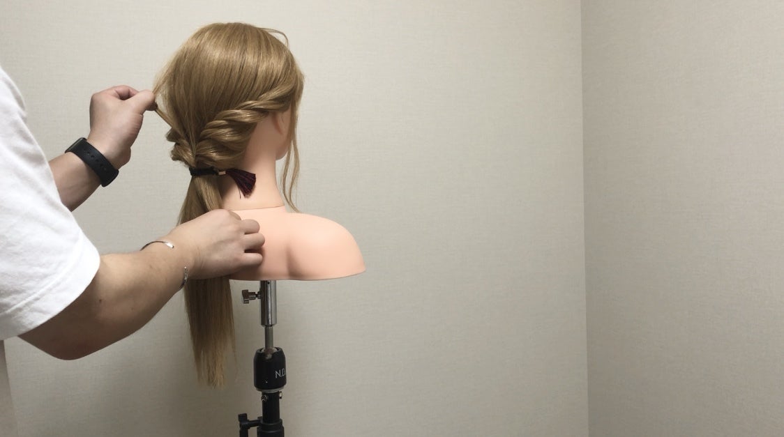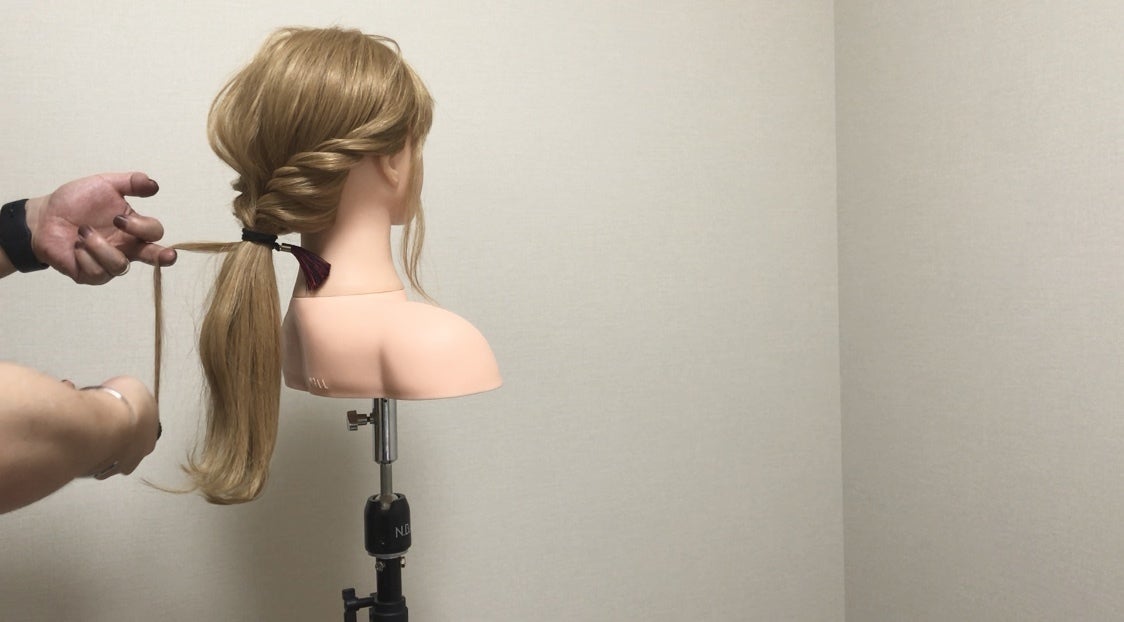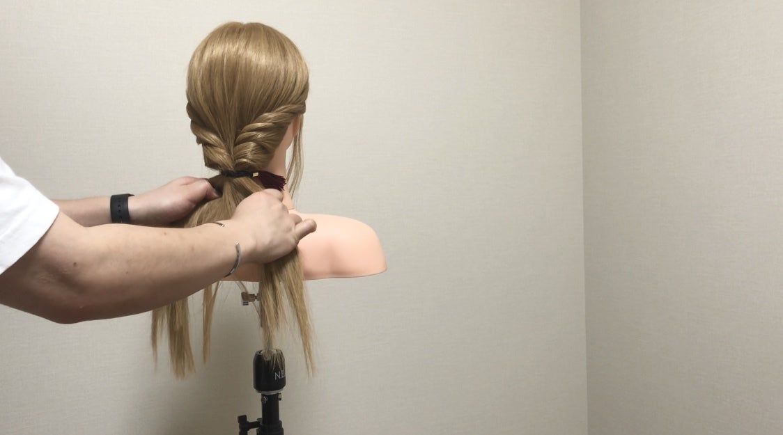 ねじる髪はしっかりとテンションをかけて緩みのないようにして下さい。ルーズ感は最後の崩しの作業で作りますので、ベース作りはなるべくしっかりとしたものを作っておくのがポイントとなります。