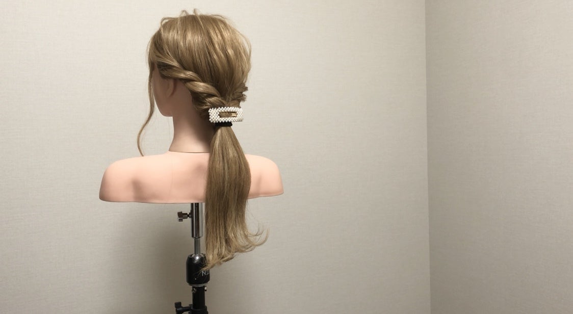 今回ご紹介するヘアアレンジは、ねじりを使ったローポニースタイルになります。