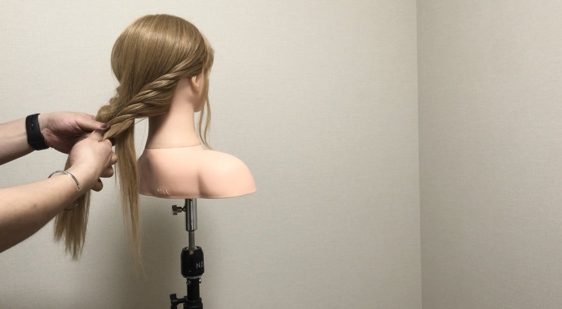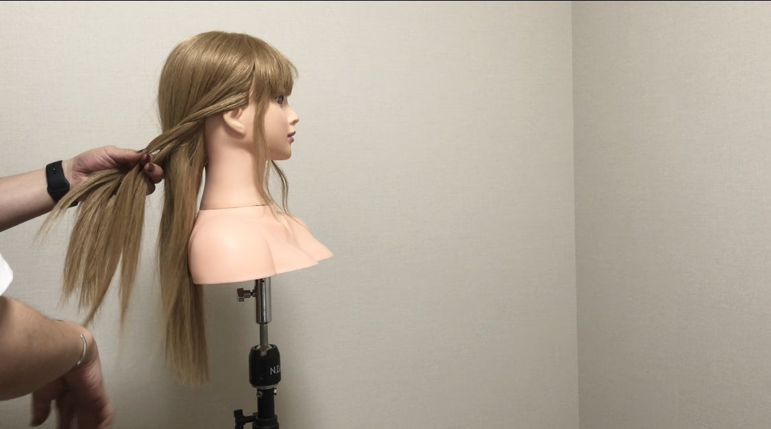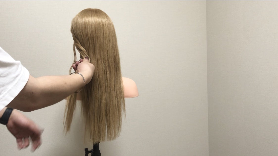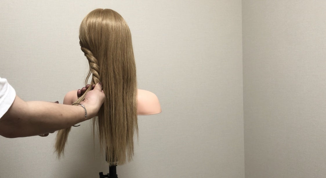 編み込む際は頭の形を意識して頭皮に手を沿わせて浮かないように気をつけて下さい。