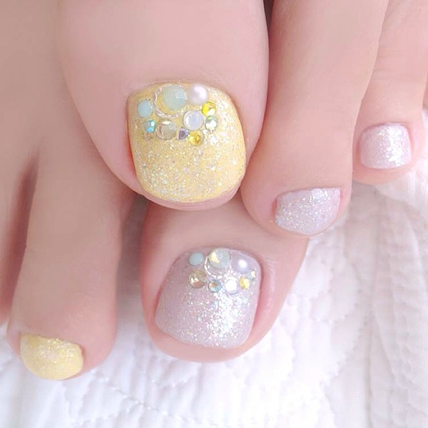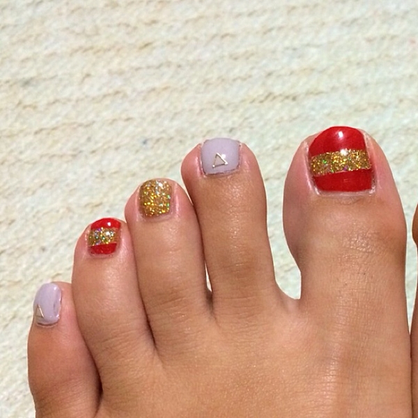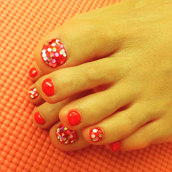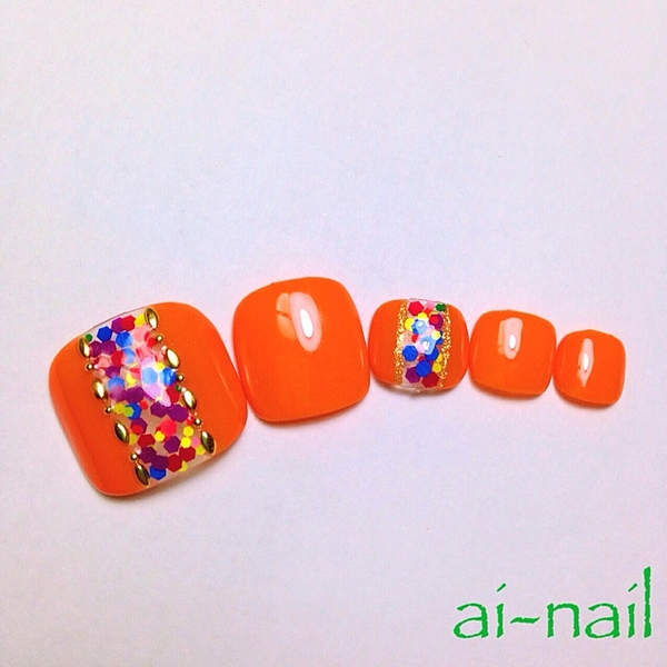 今回は虹色にちなんで、赤・オレンジ・黄色・緑・青・水色・紫のフットネイルを集めてみました!虹の輝きをイメージしてラメネイル限定です。あなたのお気に入りのラメネイルを見つけてみてください。