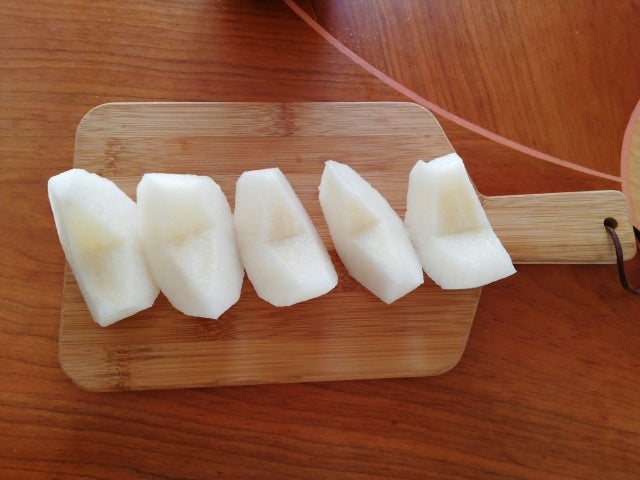まずは梨の皮をむき、食べやすくカットします