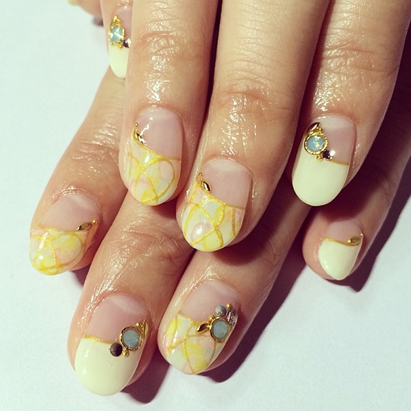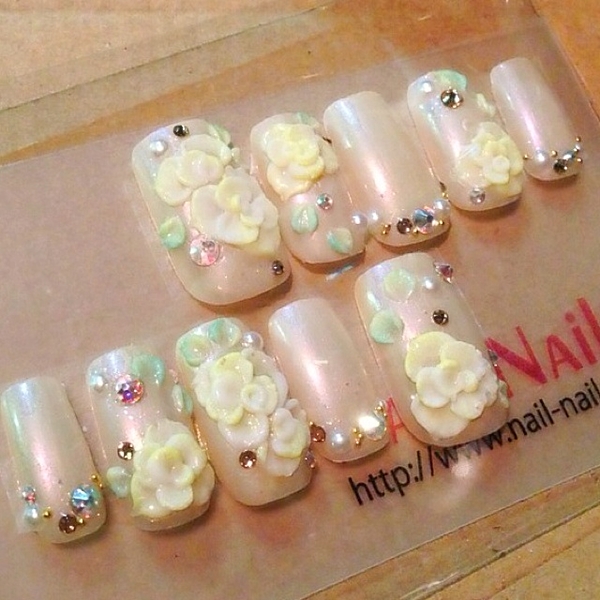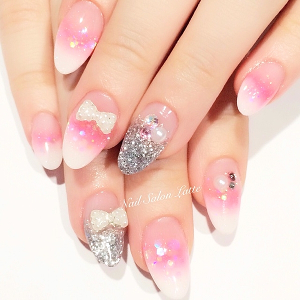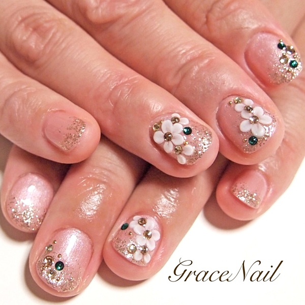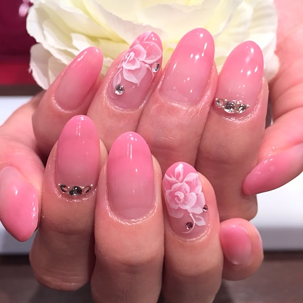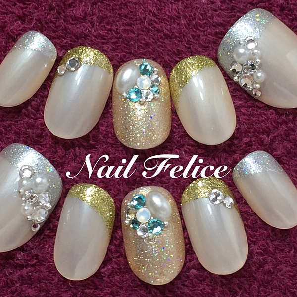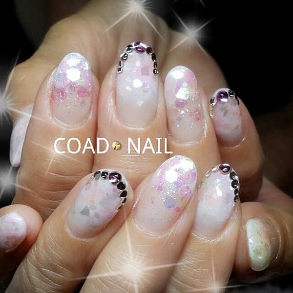 ホワイトのグラデーションに細かいストーンを合わせたデザインです。