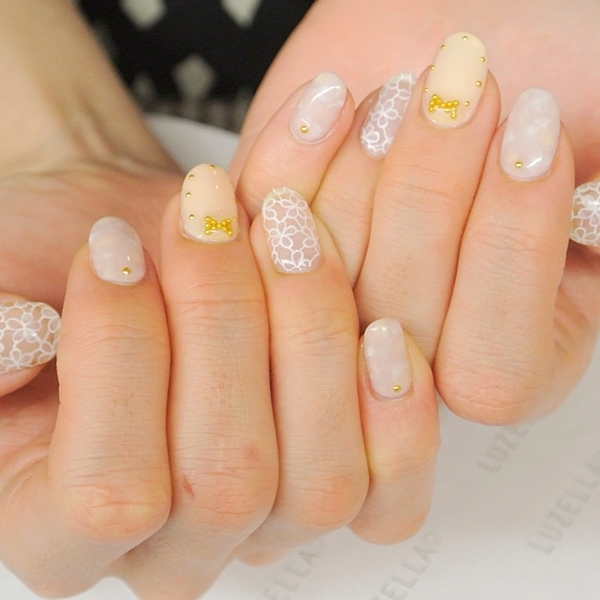 レースのデザインをクリアベースに描く事でより一層綺麗に見せる事が出来ます。