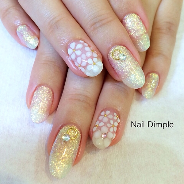 ふんわりお花の白グラデーション ブライダルにもいいですね゚.+:。(≧∇≦)ノ゚.+ キラキラスワロフスキーもステキさプラス✨ #ネイル#御茶ノ水#中央線#総武線#白#グラデーション#花#アート http://t.co/2Akhtx9n7K