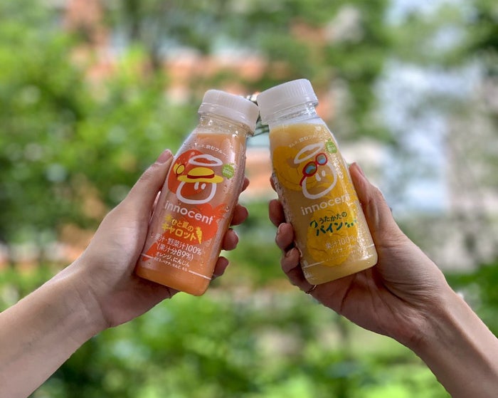 『イノセント “まんま、飲むフルーツ”』は、果汁100%。濃縮還元果汁を使ったり、お水でも薄めていない贅沢なフルーツジュースです。さらに甘味料や合成着色料、増粘剤も一切使用していないので、子どもから大人まで安心して楽しめますよ。そんな “まんま、飲むフルーツ” から今年の夏だけ楽しめる期間限定のレシピ「ひと夏のキャロット」「うたかたのパイン」が登場しました!