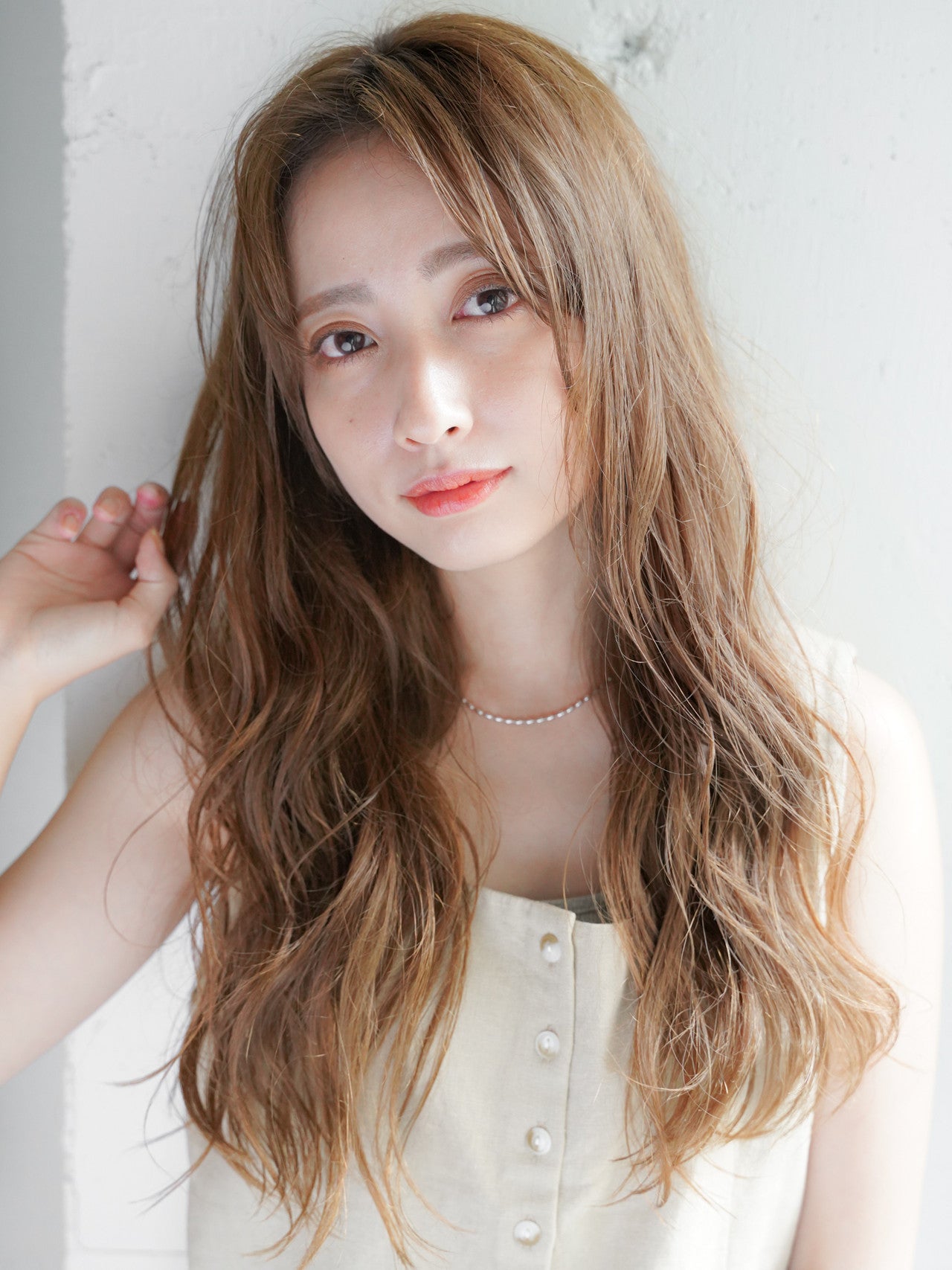 丸顔さんは、丸みのある顔立ちから幼く見られがちですが、縦ラインを意識したヘアがカバーしてくれます。トップにボリュームを付けて、サイドは逆に抑えましょう。ウェーブは、頬から下に軽く付けます。