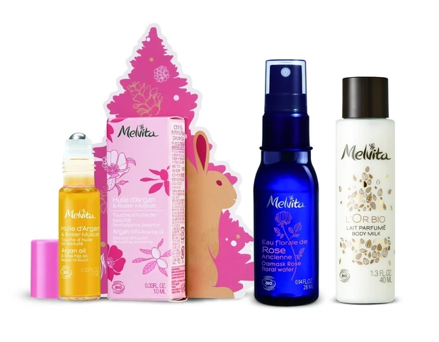 アルガンオイル、人気のアルガンオイル ローズ、限定品のアルガンオイル リリーオブザバレーの3種からお好きな1品と、ローズの化粧水とクリームもセットで楽しむことができるクリスマスコフレ。メルヴィータのアイコン的存在のアルガンオイルで、肌にご褒美を与えながら、ローズの香りに包まれる優雅なスキンケア体験はいかがですか?