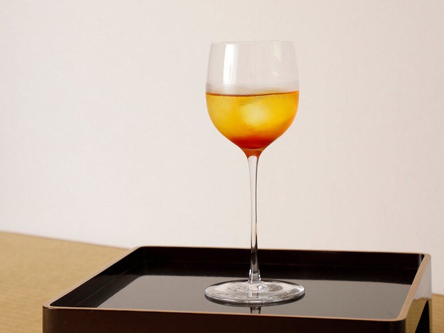 かき混ぜながら飲むと、薄茶の爽やかな苦み、カシスとレモンの爽やかな酸味の融合を感じる夏らしいカクテル。このカクテルは、抹茶とカシスリキュール、レモンがあれば家庭でも簡単に作れるそうで、「ご家庭で手軽に抹茶カクテルを味わって欲しい」という想いも込められているのだ。