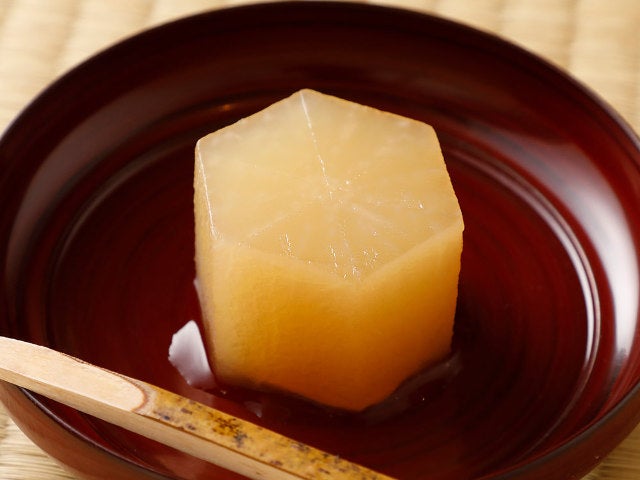 「『茶の湯』が発達した鎌倉時代では砂糖は貴重品で、栗などの木の実、干し柿や梨などの果実、アワビ、シイタケなどの天然の甘みをお菓子として茶事に用いていました。その体験をしてもらいたいと考えたのですが、さすがに舌が甘みに慣れた現代人に大根の甘さだけでは物足りないと思い、ほんの少しだけ和三盆を加えています」(鈴木さん)