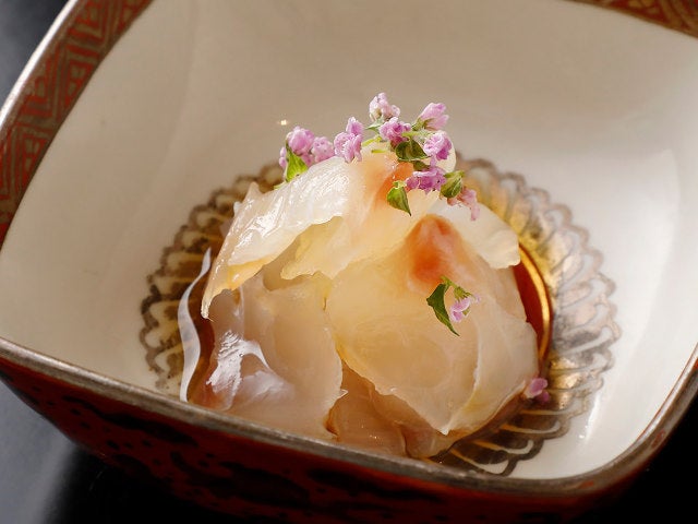 その時々の旬の魚を昆布で締め、二杯酢を合わせている。その飾らない潔さゆえに、真鯛のうまみがダイレクトに感じられる。
