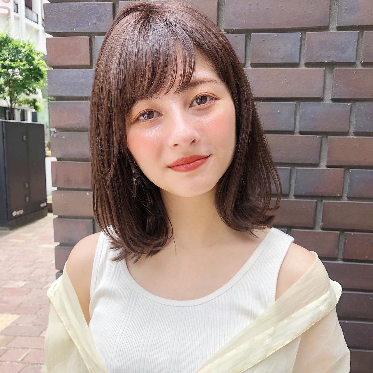 鎖骨ラインのミディアムヘアは、女性らしく魅力的に見える長さ。重たく見えないようにレイヤーを入れてくびれをつくっています。毛先は外巻きにして旬なアレンジを楽しみましょう。