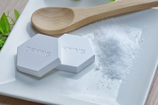 塩が固まるのを予防するには、珪藻土を活用するのもおすすめです。珪藻土は吸水性に優れているため、しばしば乾燥材代わりに使用されます。タブレット状のものやコンパクトなスティック状の商品が市販されており、塩を入れている瓶などに入れておくだけで固まるのを防いでくれます。