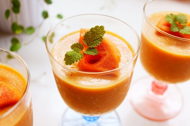柿をピューレにしてから冷凍保存する方法もあります。ピューレ状にすることでフルーツソースとして使用したり、ほかにも色々な調理に使用できます。皮をむいて種を取り除き、カットした柿をミキサーやブレンダーでピューレ状につぶします。フリーザーバッグなどに入れてしっかりと密閉し、平らにして冷凍庫で保存しましょう。製氷皿を使って冷凍すると、小分けにして使用することができてとても便利です。