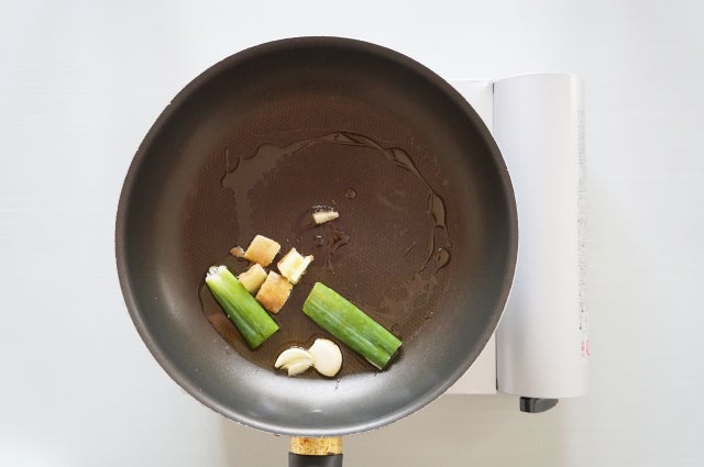 100~200ml程度の多めの油をフライパンに入れて油をなじませます。