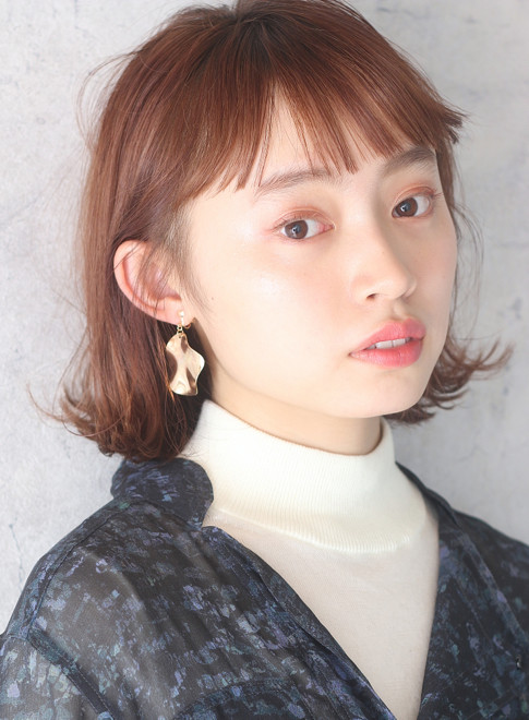 ブラウンをベースに赤をいれたレッドブラウン。こちらのカラーは大人世代にしっくりくるミディアムヘアと合わせると、落ち着いた秋ムードになります。