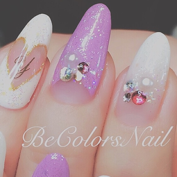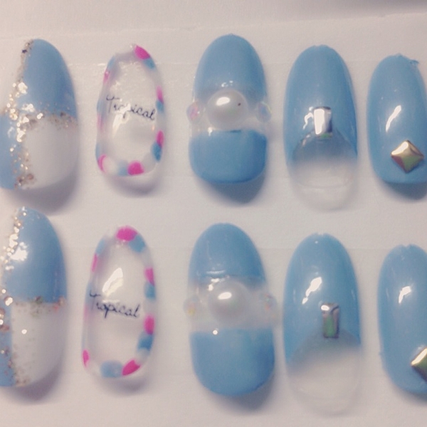 貝殻のカタチにくり抜いたネイルがとっても夏らしいですね!ビジューと組み合わせると夏らしさがUP。