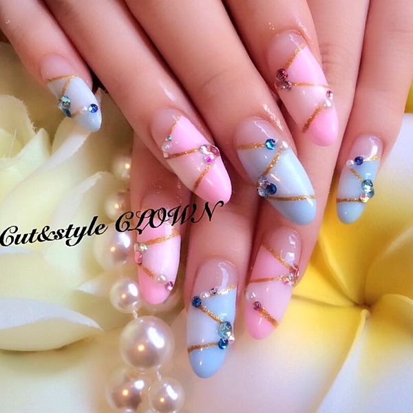 ベースを淡い色にする事で、カラフルなストーンが良く映えるデザインです。