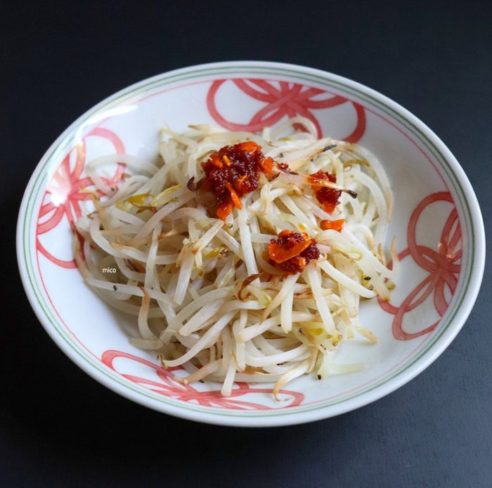 もやしに焼き色がついたら、塩と胡椒をふり、さっと混ぜて完成。 お好みで食べるラー油をかけて召しあがれ。まったく水が出ず、シャキシャキ食感でとってもおいしいですよ。グリルをもっと活用しよう!