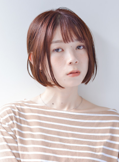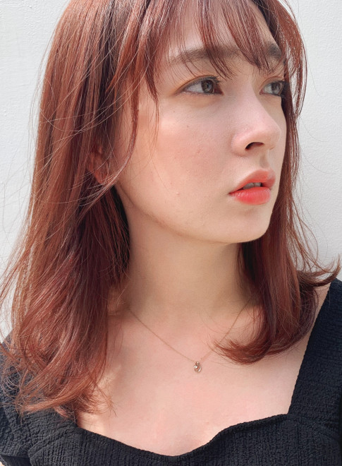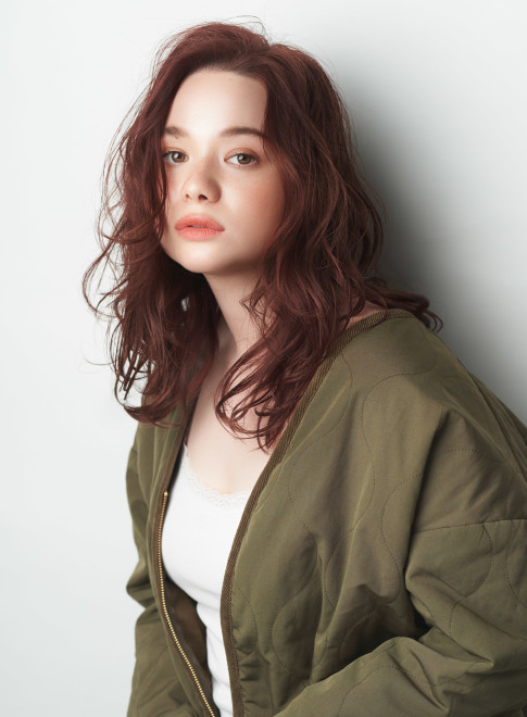 レッド系の柔らかなブラウンカラーは、しっかり暖かみを感じさせる色合いで秋にぴったり。ツヤ感もたっぷりなので、髪質やお肌も自然と綺麗に見せてくれますよ。