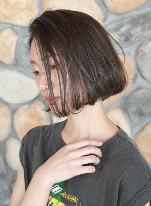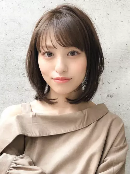 ナチュラルな雰囲気が魅力のストレートベースのボブスタイルです。毛先に丸みを出すことで、柔らかく女性らしいニュアンスをプラス。透け感のある前髪もポイントです。