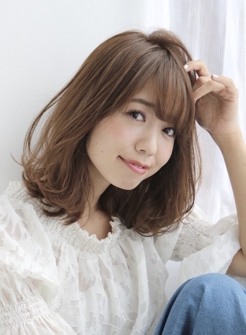 顔周りにレイヤーを入れて動きをつけたワンカールミディスタイル。ミルクティーのようなベージュカラーが、透明感と柔らかさをプラスしています。ワンカールした後にオイルで仕上げれば、乾燥に負けず艶感もアップ。
