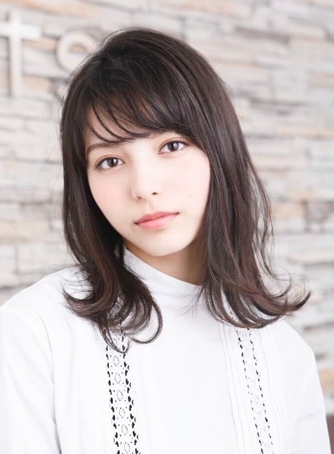 レイヤーを入れて軽さを出した外ハネミディ。表面にたっぷりレイヤーを入れて軽い質感に仕上げているので、毛量の多い人にもおすすめです。前髪は束感のあるシースルーバングでトレンド感のあるヘアスタイルに。