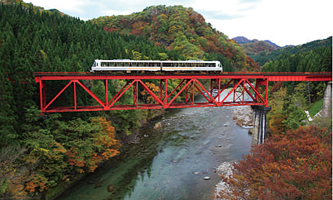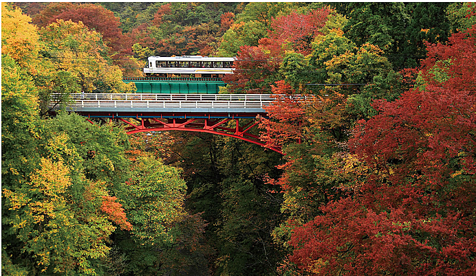 紅葉の中を列車で♡(秋田)