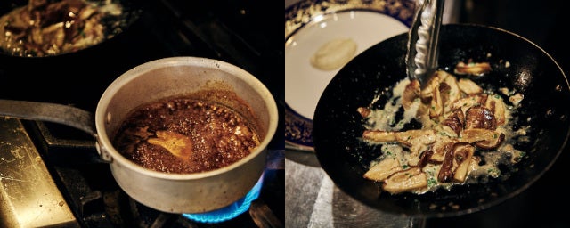 さらにセップ(イタリアンではポルチーニ)を炒めたア・ラ・クレーム(クリーム煮)を、根セロリのピュレとともに仔牛に添える。