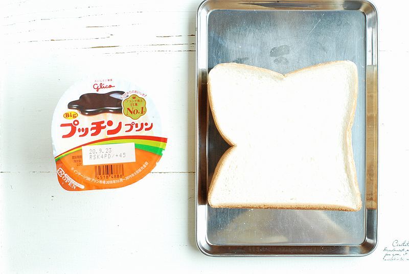 食パンにプリンをのせて焼くだけのプリントーストはとっても簡単♪