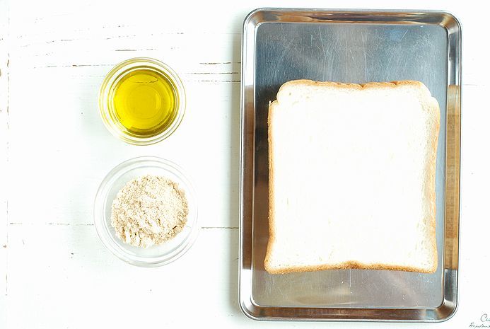 ④ 食パンを天板にのせトースターで約1分カリカリになるまで焼く。