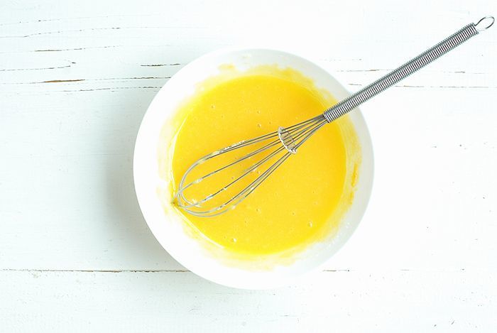 ② ボウルにクリームチーズ、砂糖、卵黄、レモン汁を入れ泡立て器でよく混ぜる