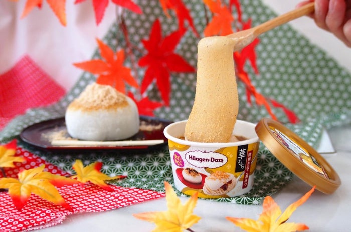 濃厚でなめらかなハーゲンダッツのアイスクリームと、やわらかく伸びるもちの組み合わせは、口に含んだ瞬間から、贅沢な気分にさせてくれます。本格的な和菓子を感じる味わいで、秋にぴったり!ぜひ、味わってみてくださいね。商品概要
