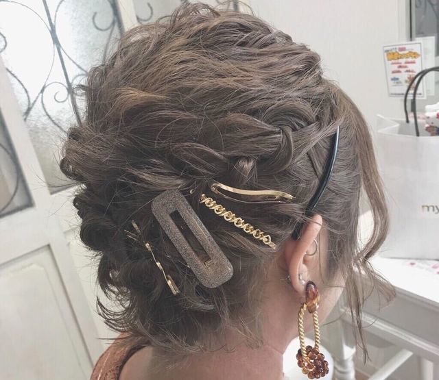 中間部分はボブさんでも長さがある部分なので、編み込みアレンジなどを入れて華やかさを出しましょう!