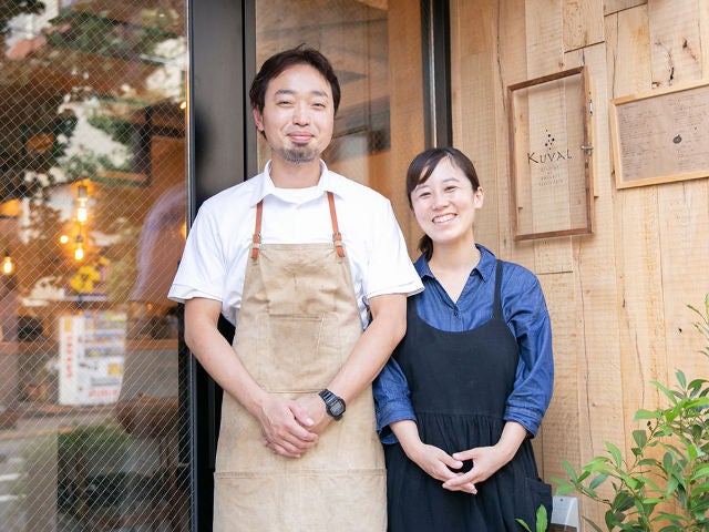 フランス料理と焼き菓子の2大看板を掲げる『KUVAL』を切り盛りするのは、シェフの久原(くばる)将太さんとパティシエールの春香さん夫婦。二人とも都内の一流店でその実力を認められて、腕をふるってきた実力派。