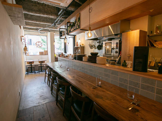 シンプルな内装に木製の家具や棚がナチュラルな風合いで、新しいのにどこか懐かしい、ほっと落ち着く空間だ。