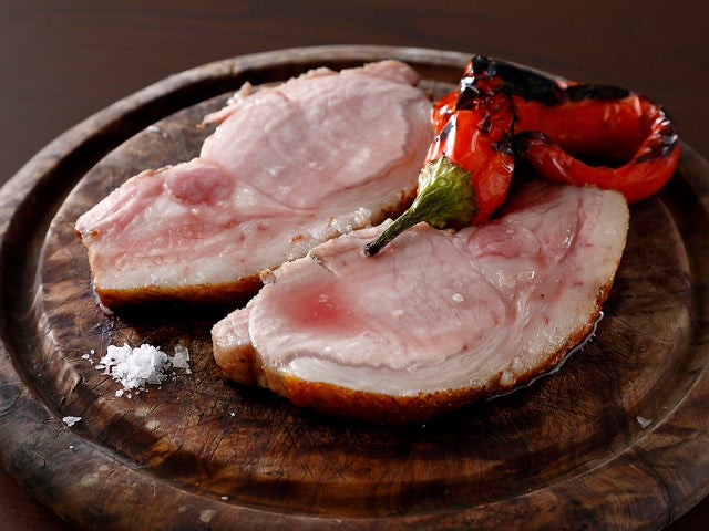 一般的な三元豚の飼育日数が約150~180日のところ、平牧三元豚は約200~250日かけて育てられているだけでなく、ストレスフリーな環境でのびのびと暮らしているため、やわらかな肉質で脂もとてもジューシーだ。