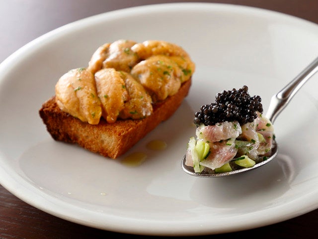 *記事中の2種は「小田原からのヒラゴイワシのタルタル キャビアのせ」「北海道産ウニのブルスケッタ」