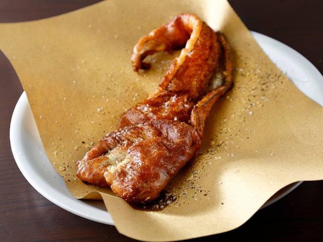 炭で焼いた熱々のフランスパンに、北海道産のウニをこんもりとトッピングしたブルスケッタは、柑橘をしぼっているため、ウニの甘みが際立ってまろやかな味わい。パンはカリカリに焼き上げているので、食感の違いも楽しい。