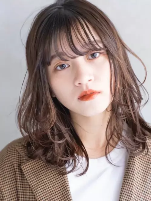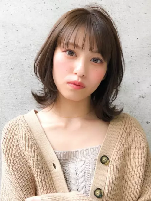 シンプルだけど存在感を放つ、ゆるっとした印象のミディアムスタイルです。短めにカットした前髪が、重めな印象になりがちな秋冬のファッションに抜け感を与えてくれます。