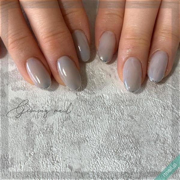 そこでおすすめしたいのが、秋色を透け感のある色味に調整してからアートしたデザインです。例えば、お好みの色味のグレーにクリアジェルをプラスしてカラーリングする、シンプルなデザインはいかがでしょうか。爪先にラメをあしらうデザインも素敵ですね。