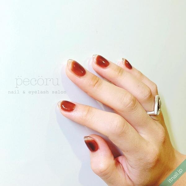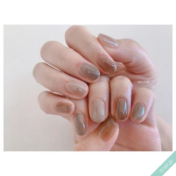 爪1本ずつをトーンの異なるクリアブラウンでカラーリングするデザインもおすすめですよ!