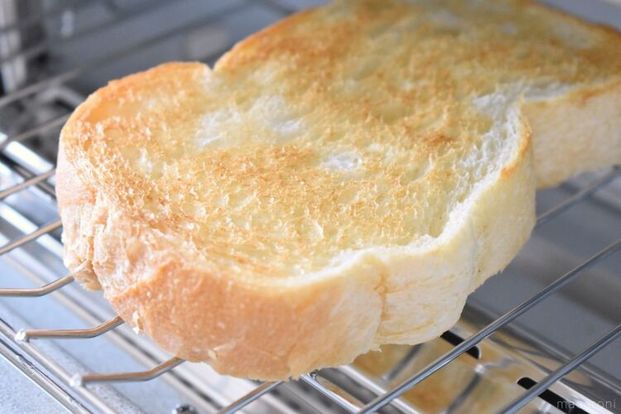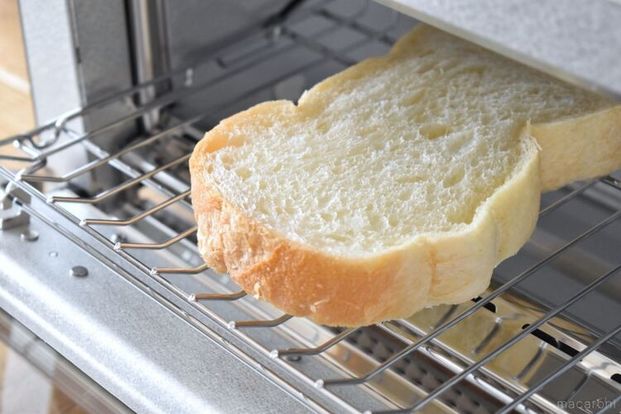 それではさっそく、食パンをトーストして作業工程や味わいをチェックしてみましょう!まずはじめに扉を開けて、パンを並べます。今回は山型食パンを使用。ムラなく焼けるよう、パンの「頭」を手前にして置くのがコツですよ。