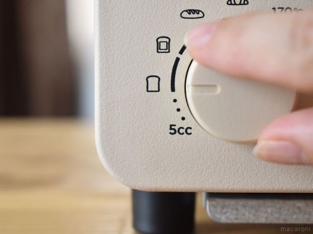 次に「モード選択ダイヤル」を回して食パンマークのトーストモードを選択。このダイヤルにも新機能が加わり、5ccの水を注ぐ4つモードにラインが入って表示されています。170℃・200℃・230℃で温められる「クラシックモード」も選択もできるようになっていますよ。