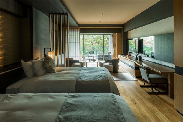 〈Gora Spa AIOI〉の施術ルームはすべて完全個室(要予約)。写真はペアルーム。