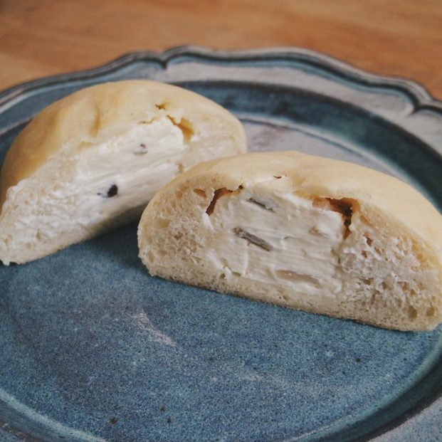 グリーンカレーはピリッと少し舌にスパイスを感じる辛さがちゃんとあって、そこからトロけて混ざり合うチーズがぐんとまろやかさを広げて、深みのある味わいに。グリーンカレーに入っているひよこ豆が時折顔を出すと、野菜や肉とは違う質感でホロリと崩れて時空が歪む(気がする)のが、これまたオツなのです。塩味が結構強めなので、朝だけじゃなく夜パンにも向いているかも!