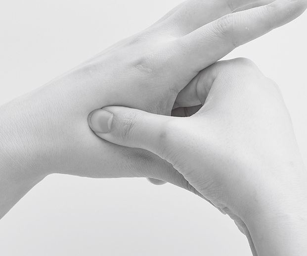「薬指の付け根の両側を、反対側の手の親指と人さし指で捻るようにグリグリと刺激することで、下半身の血流がアップしてきます。生理痛をはじめ、生理不順、更年期障害など、婦人科系のあらゆるトラブルを緩和させることに効果的です」