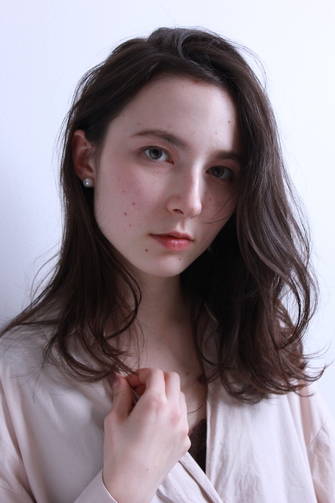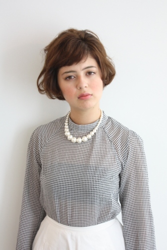 やわらかなくせ毛風ショートに、ベージュカラーを加えたスタイル。ベージュとセミウェットの質感が、アンニュイ度を上げています。