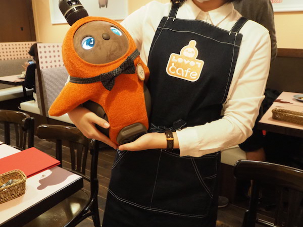 席について注文をすませると、スタッフさんがLOVOTちゃんを席に連れてきてくれます♡